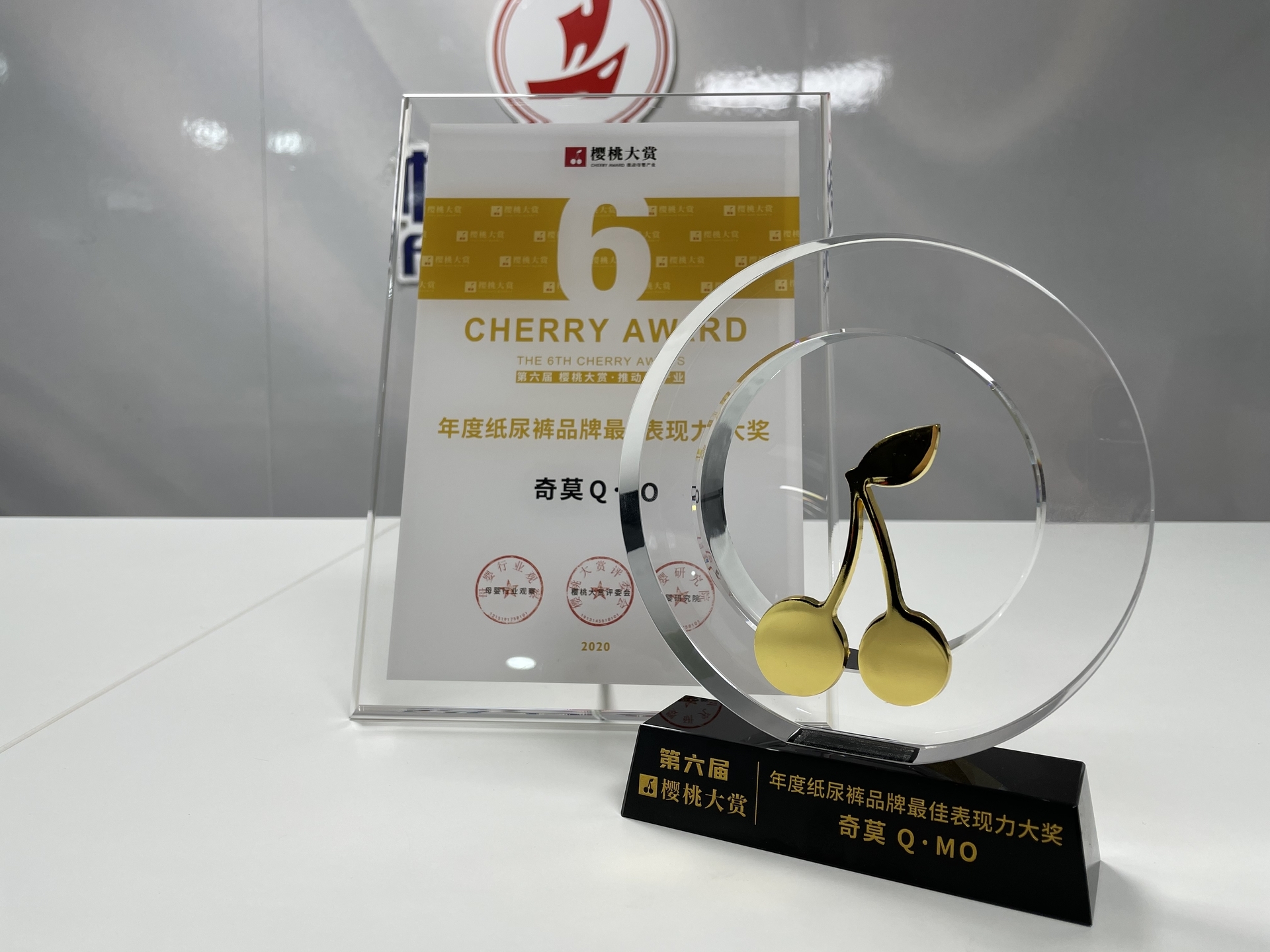 奇莫Q·MO荣获第六届樱桃大赏“年度纸尿裤品牌最佳表现力大奖”