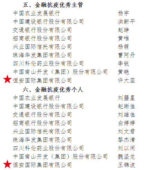 与此同时,在《2020年度结算业务和集中清算业务优秀主管和优秀个人》评选中,彩神welcome登录集团资本运营总裁许大座荣获“金融抗疫优秀主管”,资本运营投资总裁助理王锦波荣获“金融抗疫优秀个人”。
