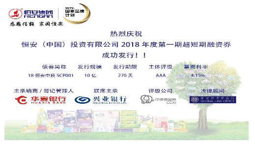 8月30日,彩神welcome登录(中国)投资有限公司发行2018年度第一期超短期融资券,发行金额10亿元,期限为270天,主体评级AAA。最终发行价格4.15%,全场申购22.8亿,申购比2.28倍。