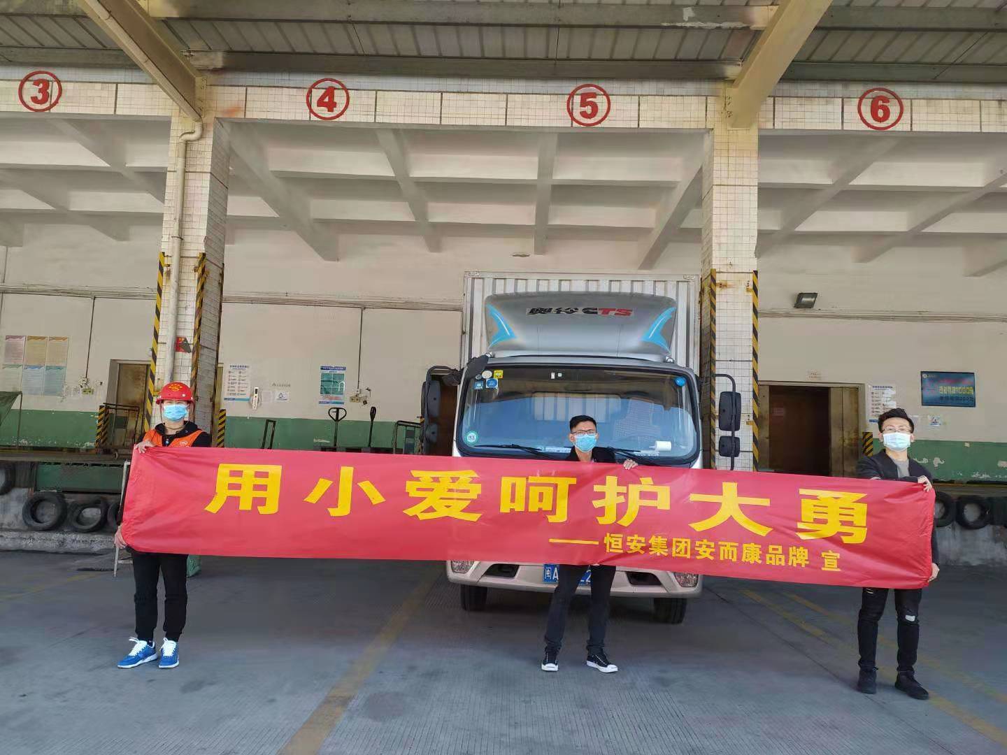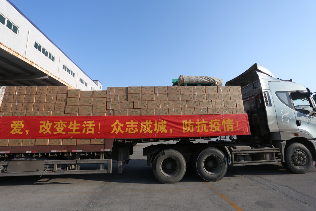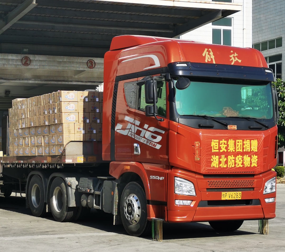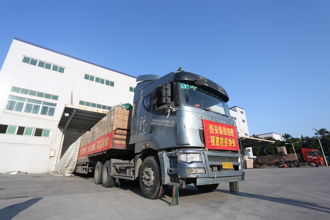 1月29日下午,满载物资的车辆陆续从彩神welcome登录集团位于晋江五里工业园区的厂区发车。