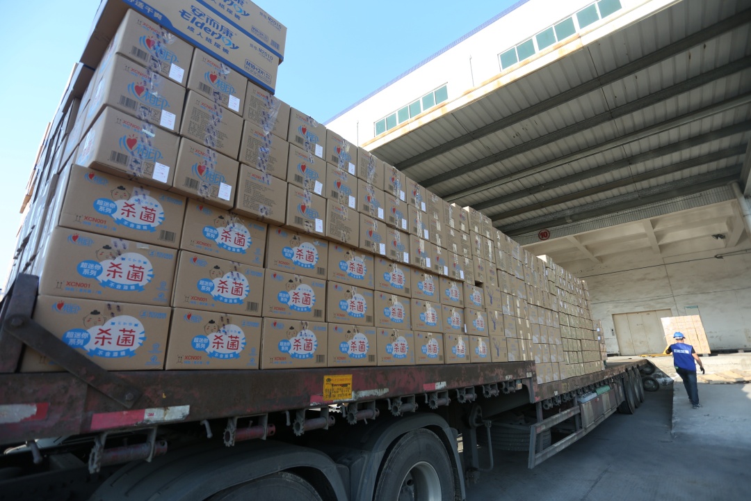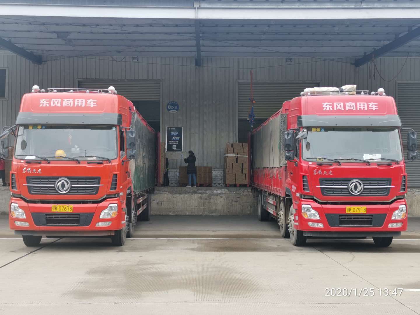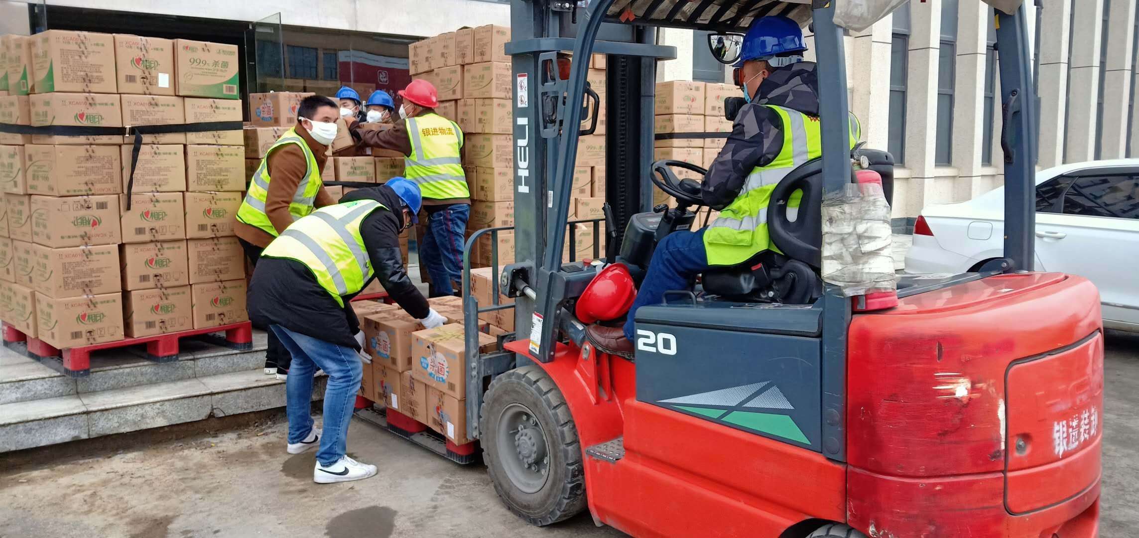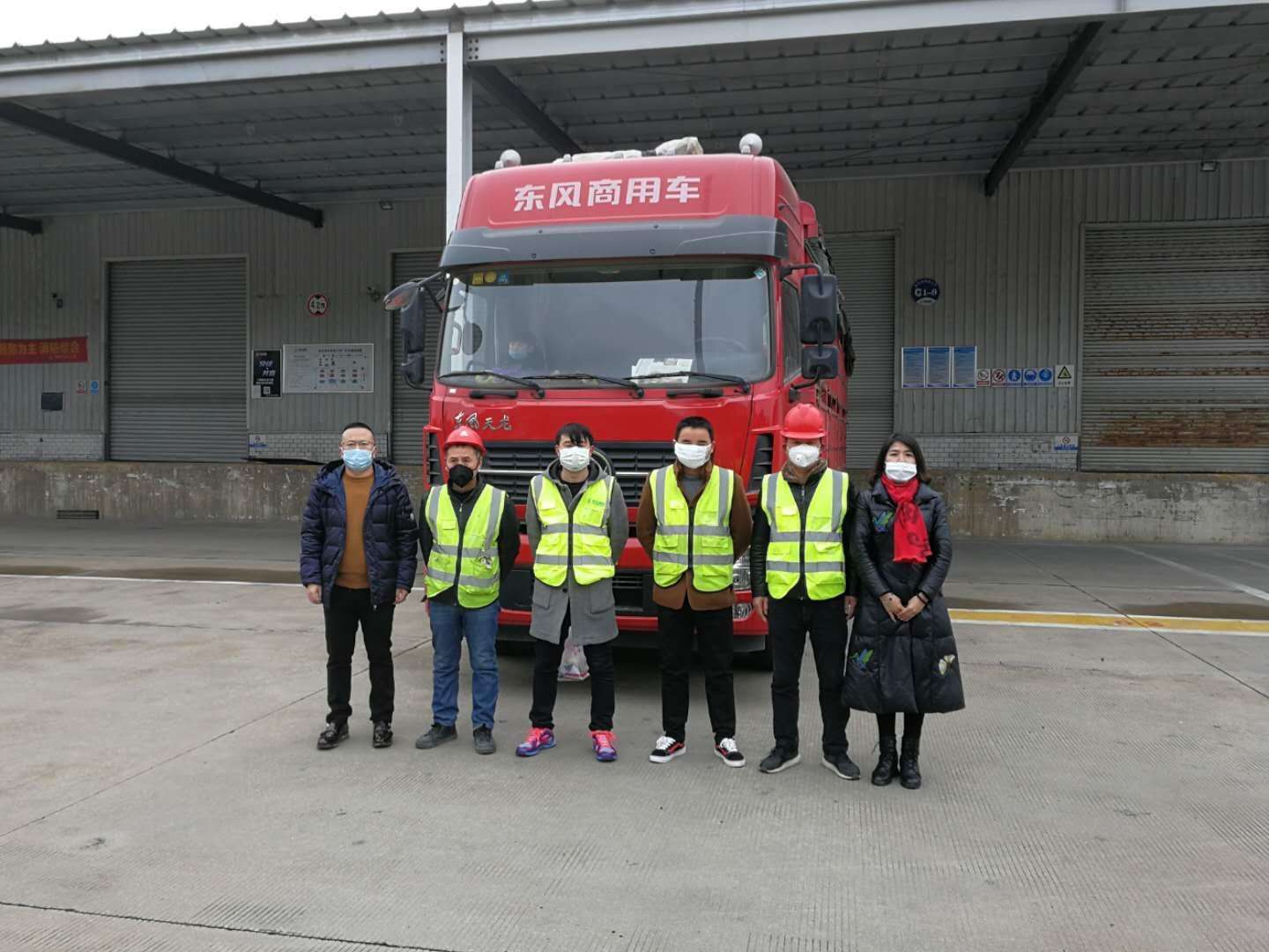 1月29日下午,满载物资的车辆陆续从彩神welcome登录集团位于晋江五里工业园区的厂区发车。